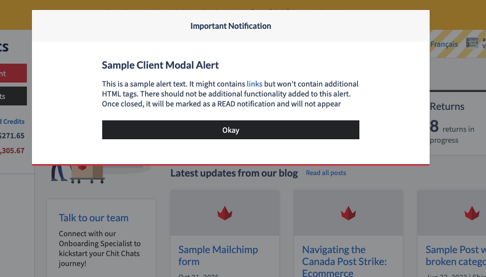 - Les mises à jour extrêmement importantes s’afficheront maintenant sous forme de fenêtre contextuelle lors de votre prochaine connexion à votre compte Chit Chats.